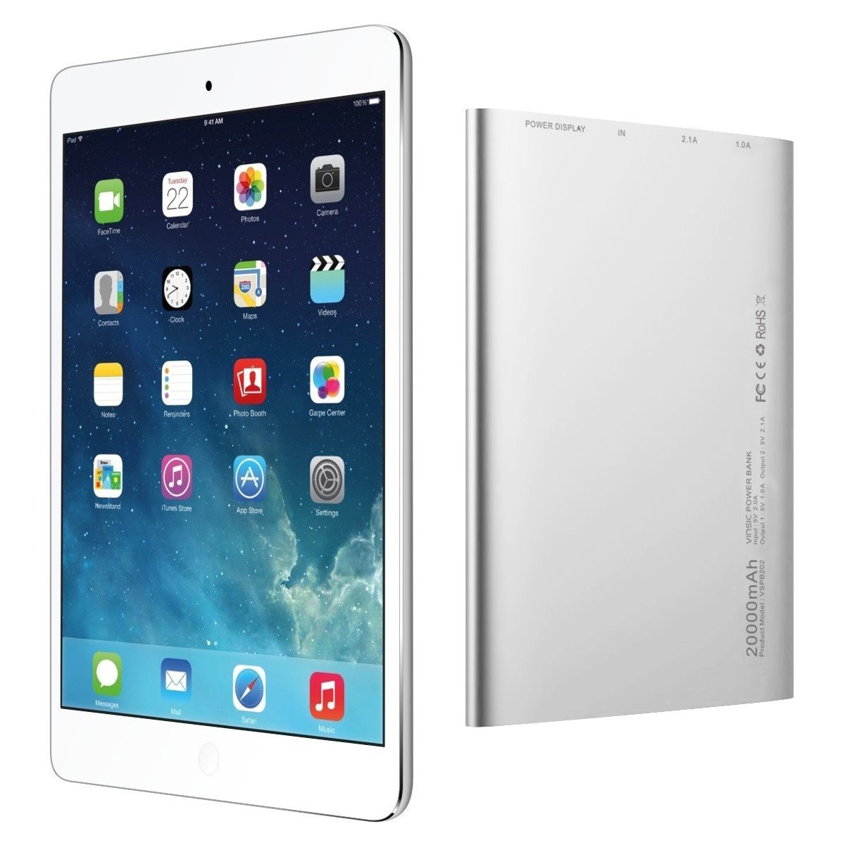 Power Bank, Vinsic 20.000mAh Ultra Slim Power Bank, 10 Times for iPhone 5/5S, Dual USB Port 2.1a & 1a External Mobile Battery Charger Pack for iPhone 6 Plus/6/5S/5/4S, iPad, iPod, Samsung Galaxy, Cell Phones, Tablets (Silver)